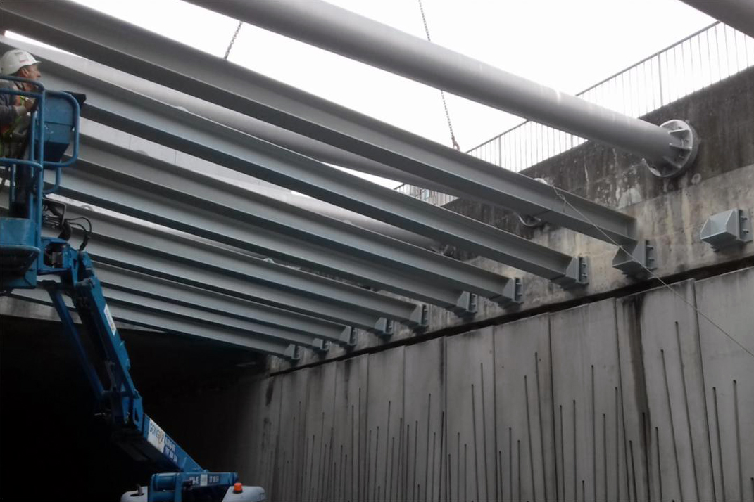 No âmbito do prolongamento da Linha Amarela do Metro, fomos responsáveis pelo fabrico, fornecimento e montagem de escoras metálicas provisórias para suporte estrutural durante a execução da obra.