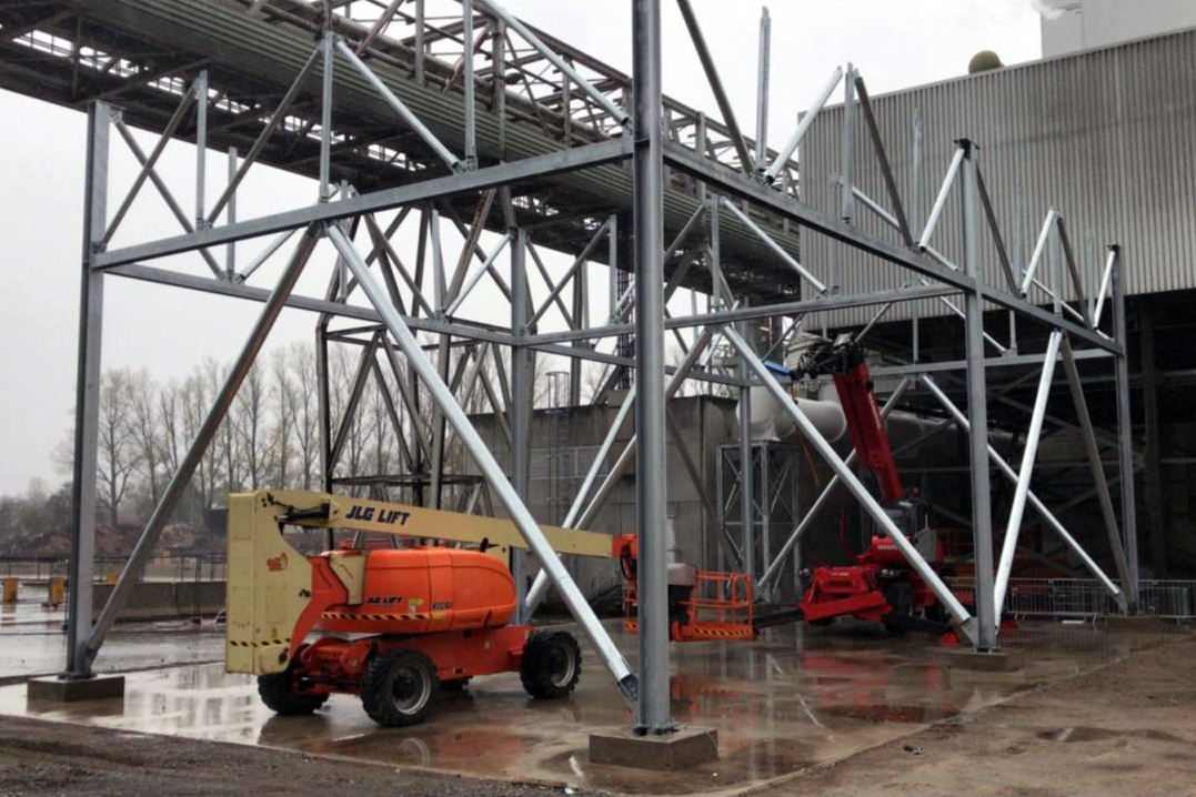Fomos responsáveis pelo fornecimento e montagem de estruturas metálicas para ACC e condutas de vapor numa central de biomassa destinada à produção de energia térmica. A solução integra perfis metálicos, suportes e sistemas de fixação adequados às exigências do sistema de aquecimento local.