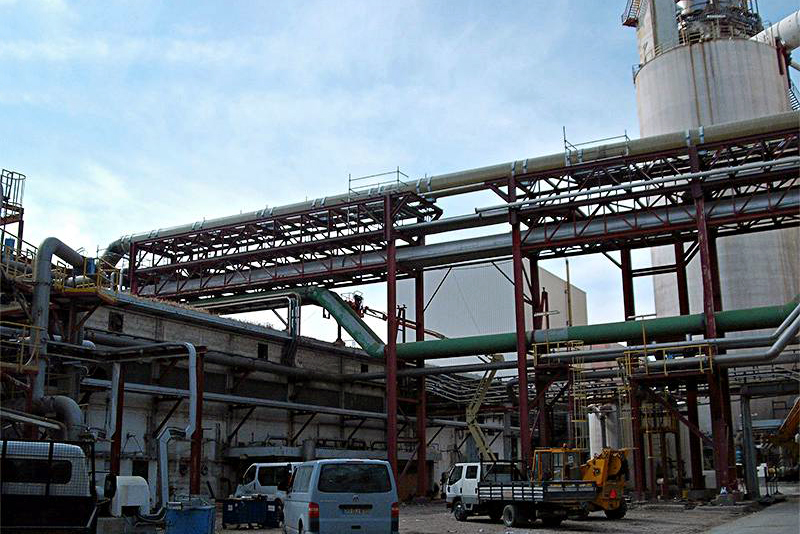 Estrutura de suporte de tubagens Central Cogeração Petrogal 2009 Porto Portugal Participámos no fornecimento e montagem de um pipe rack,
