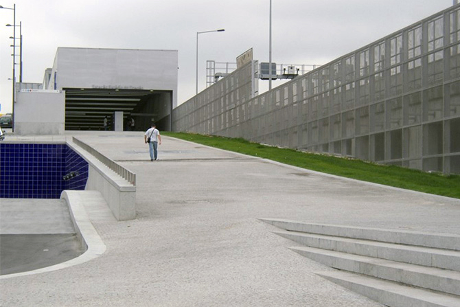 Estação de Metro Dragão 2004 Porto Portugal Interviemos no fornecimento e montagem de guardas metálicas com painéis de vidro laminado